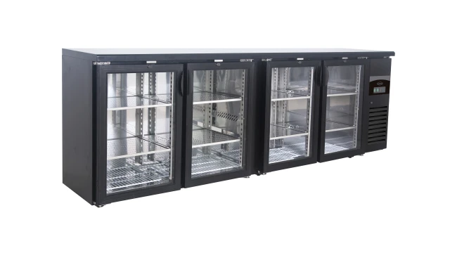 Bar glasdeur koelkast van Combisteel in het zwart met automatische ontdooiing, LED binnenverlichting, 8 verstelbare legplanken.