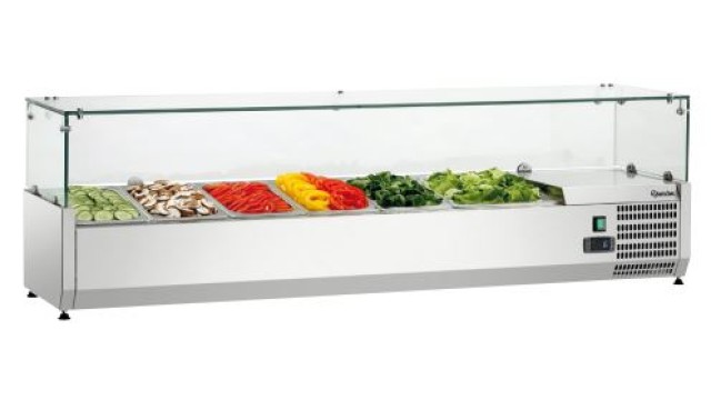 Bartscher Koelopzetvitrine GL 1/3 + 1/2 GN Hygiënisch en schoon – glazen opbouw als hoestruit