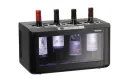 Ruimtebesparende wijnkoeler met LED-verlichting in elegant design. 4 flessen witte, rosé of rode wijn kunnen binnen één temperatuurzone in een open bar, zoals aan het buffet, aan de bar of tijdens een wijnproeverij, representatief koel worden gehouden.