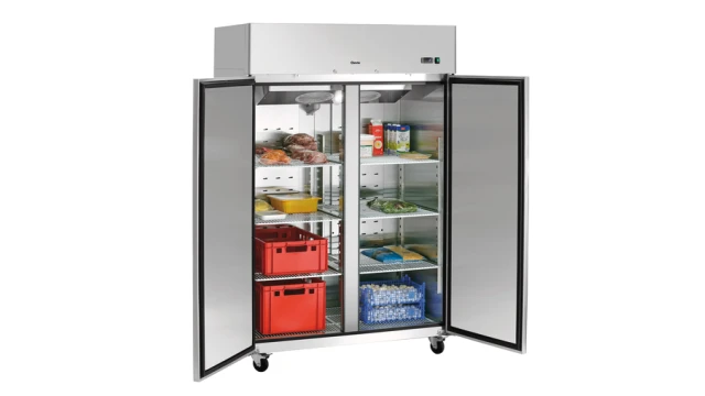 De afsluitbare horeca koelkast met 2 vleugeldeuren en een inhoud van 1.400 liter is op basis van de klimaatklasse speciaal ontworpen voor omgevingen met hoge temperaturen. Dankzij de wielen is het solide model zeer eenvoudig te verplaatsen.