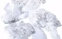 IJsschilfers "nat ijs" die over vis en vlees gestrooid worden in de koelkast,