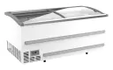 Bedrijfsklare commerciële, vrieseiland met statische koeling, analoog temperatuurregelaar, handmatige ontdooiing met glazen glijdeksels, hoogte bodem aanpasbaar.