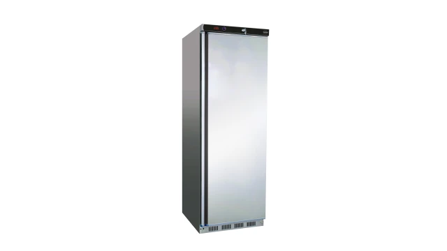 een omkeerbare geïsoleerde deur met slot, geïntegreerde handgreep en stelvoetjes en automatische ontdooiing.