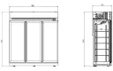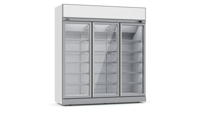 Combisteel geforceerde glasdeur koelkast model INS 1530R BR. Vrieskast met canopy voorzien van 15 roosters, en LED verlichting.