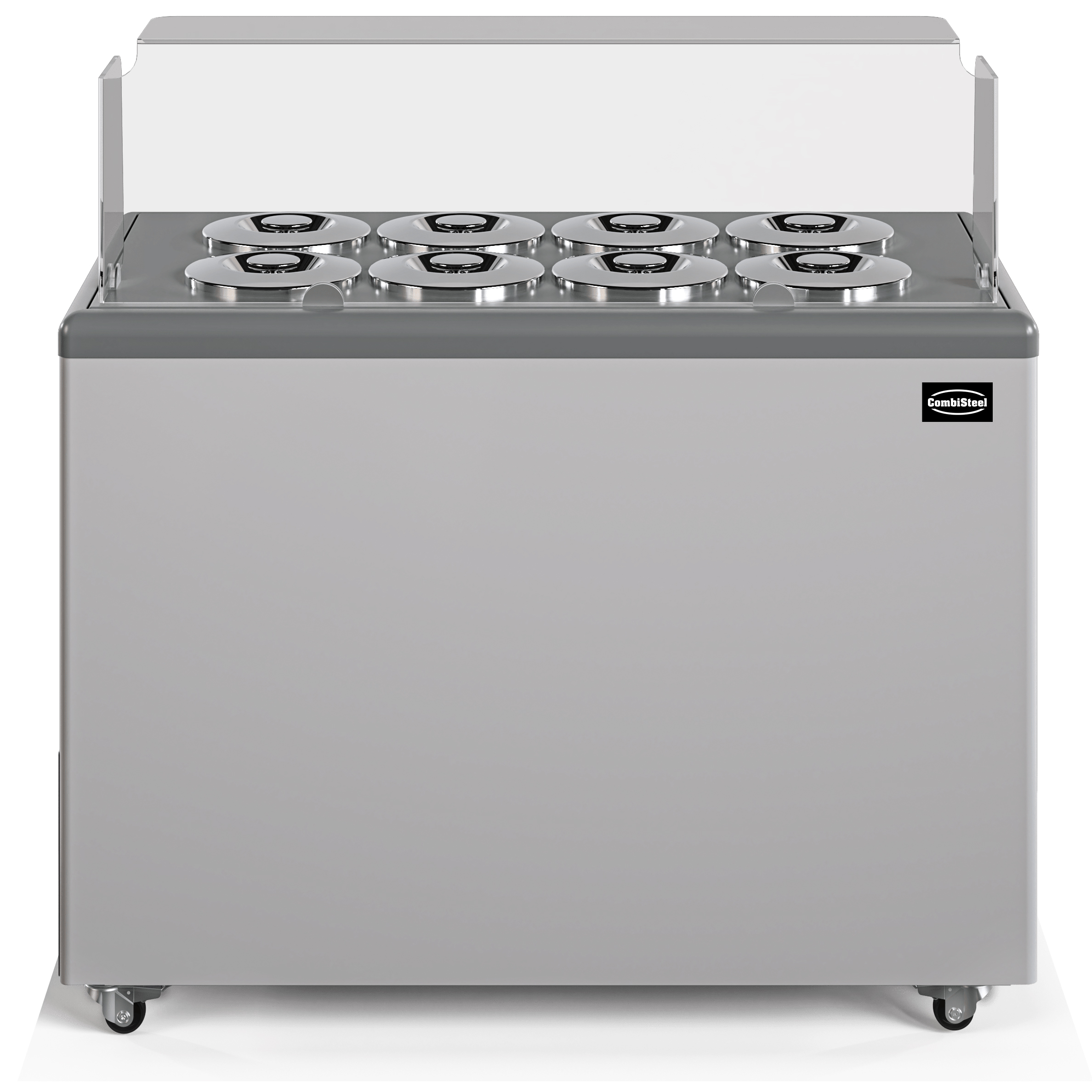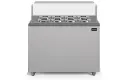 Deze schepijsvitrine is ideaal voor ijssalons, horeca en verkooppunten waar efficiënt werken en betrouwbare opslag van schepijs centraal staan. Dankzij de statische koeling wordt het ijs gelijkmatig gekoeld binnen een temperatuurbereik van -10/-20 ºC, zodat de kwaliteit optimaal behouden blijft. Het model werkt met ronde ijsbakken die worden afgesloten met RVS deksels, wat zorgt voor hygiënisch gebruik en minimaal koudeverlies. Naast de bovenruimte voor 8 ijsbakken biedt deze vitrine extra opslagruimte onderin voor nog eens 6 bakken, zodat je altijd voldoende voorraad binnen handbereik hebt. Afmetingen: 1214x674x935 mm (LxBxH) – Temperatuur: -10/-20 ºC – Inhoud: 360 liter – Gewicht: 59 kg.