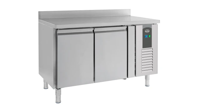 Een professionele gekoelde werkbank van Combisteel, geschikt voor GN 2x 1/1 en ideaal voor keukens waar ruimte beperkt is. Hiermee creëert u extra werkoppervlak en extra opslag. Met 2 verstelbare roosters, 2 bodemroosters, gebruiksvriendelijke bediening, automatische ontdooiing en geforceerde koeling.