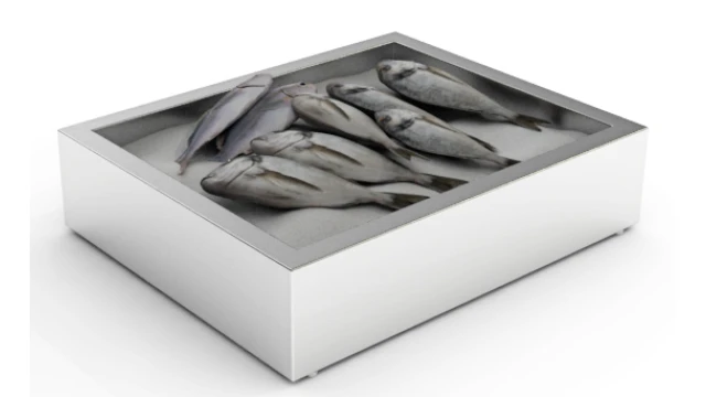 Geïsoleerde scherfijsbak met ondiepe geperste bodemroosters en een geïntegreerde afvoer.