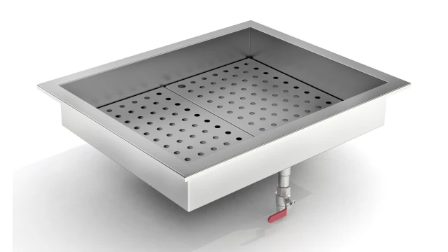 Geïsoleerde scherfijsbak met ondiepe geperste bodemroosters en een geïntegreerde afvoer.