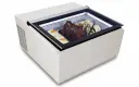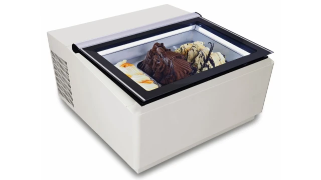 Een eenvoudige maar doeltreffende horeca ijsvitrine opent aan de klantzijde