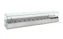 De gekoelde opzetvitrine is voor het bewaren van ingrediënten in gastronormbakken. Dit is bijvoorbeeld handig voor horecaondernemers die zich bezighouden met het verkopen van etenswaren als belegde broodjes, Door voor het opslaan en koelen van broodbeleg glazen opzetvitrines te gebruiken, kunnen de gasten in de betreffende horecazaak namelijk direct zien uit welke soorten broodbeleg men kan kiezen bij het kopen van een belegd broodje. De opzetvitrine is standaard voorzien van een glasopstand. De temperatuur is digitaal instelbaar. Wordt geleverd zonder GN-Bakken