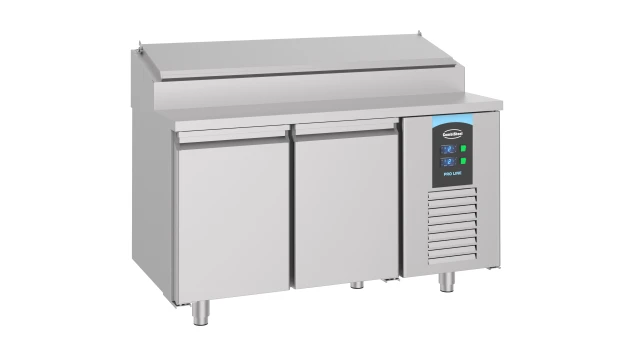 Combisteel 7489.5140 geforceerde saladette, met 50 mm isolatie, automatische ontdooiing, geschikt voor 7x 1/3 GN, omgevingstemperatuur +43ºC, inclusief 1 rooster 1/1 GN en geleiderset per deur en RVS deksel.