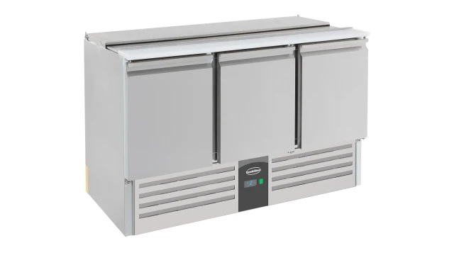 Combisteel 7950.0094 saladette met geforceerde koeling, 3 deuren en automatisch ontdooiing, geschikt voor 3x 1/1 GN + 4x 1/1 GN.