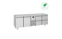 Een professionele gekoelde werkbank van Combisteel, geschikt voor GN 2x 1/1 en ideaal voor keukens waar ruimte beperkt is. Hiermee creëert u extra werkoppervlak en extra opslag. Met 2 verstelbare roosters, 4 laden met een soft closing, gebruiksvriendelijke bediening, automatische ontdooiing en geforceerde koeling.