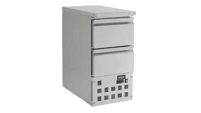 De koelwerkbanken zijn van de hoogste kwaliteit. Deze geforceerde koelwerkbank met 2 lades, is ideaal voor horeca met een kleine keuken. De ruimtebesparende compressor is onderin geplaatst, eenvoudig te reinigen werkblad.