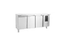 Een professionele gekoelde werkbank van Combisteel, geschikt voor GN 2x 1/1 en ideaal voor keukens waar ruimte beperkt is. Hiermee creëert u extra werkoppervlak en extra opslag. Met 3 verstelbare roosters, 3 bodemroosters, gebruiksvriendelijke bediening, automatische ontdooiing en geforceerde koeling