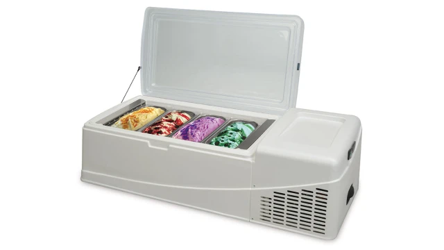 Zeer compakte schepijsvitrine, kan makkelijk "mobiel" worden ingezet