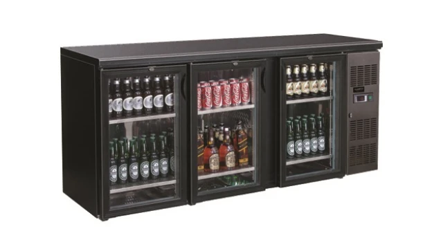 Bar glasdeur koelkast van Combisteel in het zwart met automatische ontdooiing, LED binnenverlichting, 6 verstelbare legplanken.