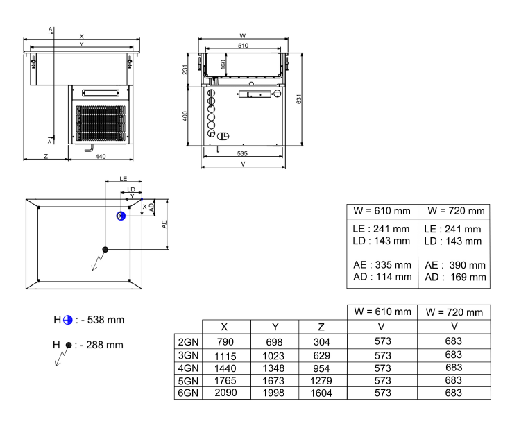 - Maatvoering: Geschikt voor 4/1 GN containers, ideaal voor grote hoeveelheden voedsel.