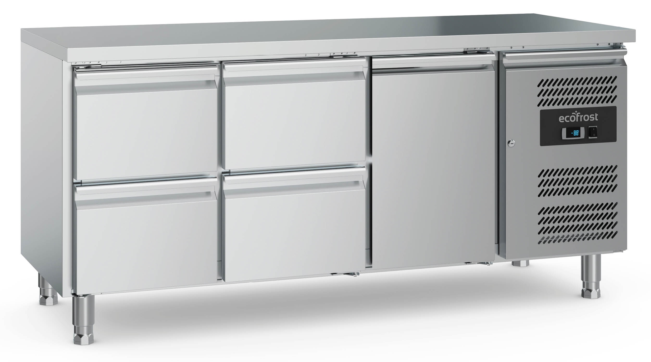 Deze professionele Eco Frost budget line horeca koeling met 4 lades en 1 deur is geschikt voor intensief gebruik en heeft 60 mm energiebesparende isolatie.
