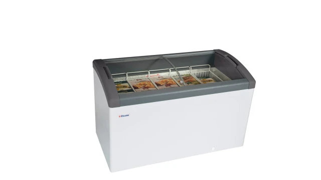 Elcold Focus 131 vrieskist met gebogen schuifruiten in een nieuw design met licht schuivende deksels, zonder manden.