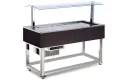De Essence worden gekenmerkt door hun grote veelzijdigheid; met een robuust en eenvoudig frame van verchroomd staal op wielen, eenvoudig houten bekleding standaard kleuren; licht kersen / wengé. Bovenstructuur van glas met led-verlichting.