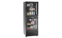 Deze professionele combinatie van koelkast en vrieskast verenigt functionaliteit en design in één apparaat. De luxe zwarte afwerking en de glazen deuren zorgen voor direct zicht op de inhoud, terwijl de afzonderlijk schakelbare LED-verlichting uw producten perfect presenteert.