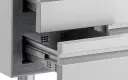 - De lades zijn uitgevoerd met lange telescoopgeleiders zodat de GN bakken er verticaal ingezet en uitgehaald kunnen worden.