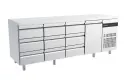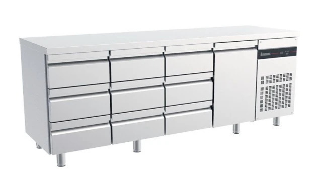 De Inomak 1/1 GN koelwerkbank is het meest populaire model van Inomak. Dit model, de PNRP 3339 is voorzien van 4 secties en uitgevoerd met 9 lades en 1 deur.