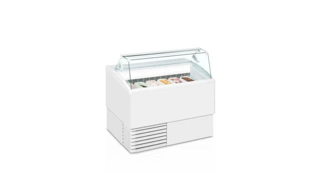 Model Isa Isetta 6 ijsvitrine met schuine ruit, geschikt voor 6 bakken + reserve.