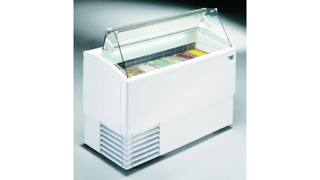 De consumptie-ijsvitrine is voorzien van extra opslagruimte onder de presentatie laag.
