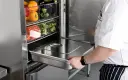 Het koelgedeelte biedt een royale inhoud van 165 liter, verdeeld over twee verstelbare planken en een basisniveau. U kunt niet alleen items direct op de planken plaatsen, maar dit gedeelte is ook geschikt voor gastronormpannen van volledige grootte (1/1) die rechtstreeks in de verstelbare rekgeleider geplaatst kunnen worden. Dit is geweldig om tijd te besparen bij het verplaatsen van pannen met voedsel tussen stations.