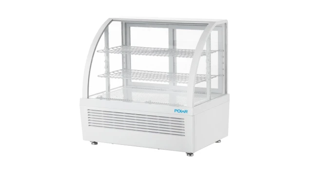 Stijlvol en aantrekkelijk, de witte Polar C-Series 100 liter countertop display koelkast is perfect voor het presenteren van uw gekoelde desserts, drankjes en snacks. Met twee verstelbare planken en energie-efficiënte LED-verlichting.