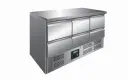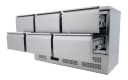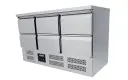 Een professionele gekoelde werkbank met 6 laden van Saro zijn ideaal voor keukens waar ruimte beperkt is. Hiermee creëert u extra werkoppervlak en extra opslag. Gebruiksvriendelijke digitale bediening, automatische ontdooiing en geforceerde koeling. De ruimtebesparende compressor is onderin geplaatst, eenvoudig te reinigen werkblad.