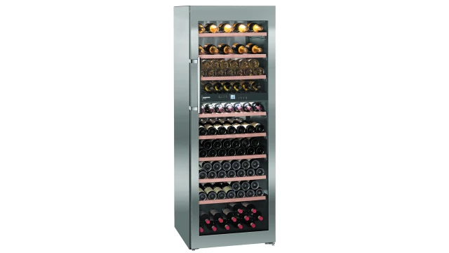 De Liebherr WTes 5972 in edelstaal biedt 2 apart regelbare temperatuurzones. Alle houten plateaus lopen op rails, 1 plateau is geschikt om geopende wijnflessen schuin te kunnen bewaren. Uitvoering met slot, 2 FreshAir filters en LED verlichting. Capaciteit 211 flessen (Bordeauxformaat).