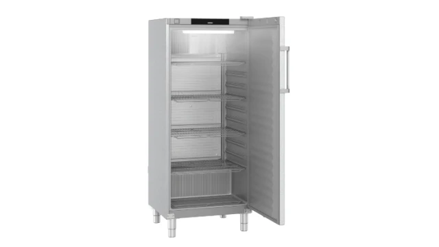 De slanke handgreep biedt toegang tot het eenvoudig te reinigen interieur van deze roestvrijstalen koeler. Bij een 90° openingshoek blijft de automatisch sluitende deur open staan voor gemakkelijk in- en uitladen. Het LightAlarm waarschuwt wanneer de deur te lang open staat en LED-verlichting zorgt voor optimaal zicht op de opgeslagen producten. Het apparaat is logisch te bedienen met het digitale aanraakdisplay.