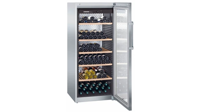 De Liebherr wijnbewaarkast WKes 4552 met UV gecoate isolatie glasdeur is rondom uitgevoerd in edelstaal. GrandCru model met verstelbare houten legplateaus, digitale temperatuurmeter, apart schakelbare LED verlichting, temperatuur- en deuralarm. Capaciteit 201 flessen (Bordeauxformaat).