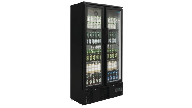 De professionele horeca Polar glasdeur koelkast heeft een grote capaciteit en 2 klapdeuren, en is voorzien van een regelbare temperatuur controller,