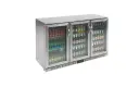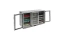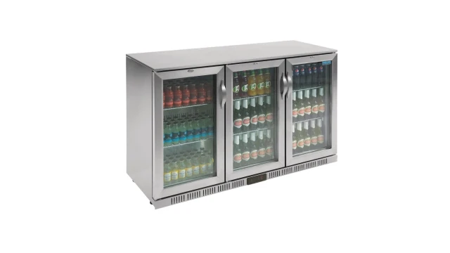 Deze Polar G-serie 3-deurs barkoeling is met zijn stijlvolle ontwerp en professionele prestaties een geweldige front-of-house displaykoeling voor al uw flesjes en blikjes drinken.Het dubbel glas in de klapdeuren en de energiezuinige LED-verlichting houden de verbruikskosten laag, terwijl de intuïtieve digitale bedieining en de RVS constructie zorgen voor gebruiksgemak en eenvoudig onderhoud. De ruime capaciteit van 270 flesjes (330ml) is perfect voor bars, nachtclubs en meer.