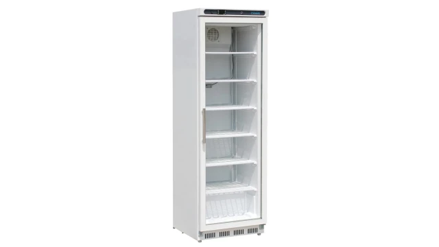 Deze aantrekkelijke rechtopstaande professionele horeca display vriezer van Polar heeft een exceptioneel grote capaciteit en een deur voorzien van dubbel glas voor uitstekende isolatie en aantrekkelijke presentatie. Deze vriezer is ontworpen om producten effectief te tonen en te verkopen. De vriezer heeft 6 roosters en een afsluitbare deur voor veilige opslag. Met stevige wielen achter voor een goede wendbaarheid, waardoor deze Polar vriezer eenvoudig te reinigen en te positioneren is.