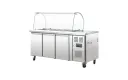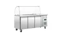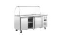 Deze saladette van Polar is een musthave voor saladebars en delicatessenzaken. De werkbank heeft een geforceerd koelsysteem, 3 roosters en is geschikt voor meerdere GN bakken zodat u voedsel op de juiste temperatuur kunt bewaren en serveren. Dankzij de glazen kap kunnen klanten wel het voedsel bekijken, maar wordt het voedsel ook beschermd tegen eventuele bacteriën. Dit komt de hygiëne ten goede. De RVS constructie maakt de saladette zeer duurzaam en robuust en geschikt voor professioneel gebruik.