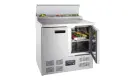 Een hoge kwaliteit, 2-deurs, RVS gekoelde professionele horeca prepareer counter van Polar. Met gebruiksvriendelijke bediening, digitaal display, geventileerde koeling en automatische ontdooiing.