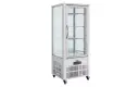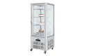 Een stijlvolle professionele horeca RVS gebaksvitrine. Aan vier zijden voorzien van glas en met effectieve LED verlichting.