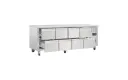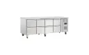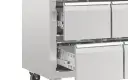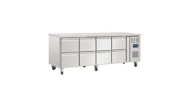 De werkbank is voorzien van 8 handige lades die geschikt zijn voor GN 1/1 en een krachtig, geforceerd koelsysteem om ingrediënten en gerechten effectief te koelen, zelfs in een zeer warme omgeving en wanneer de deur regelmatig open en dichtgaat. U kan de werkbank bovendien gebruiken om keukenapparatuur op te plaatsen, zoals een grill en warmhoudplaat.