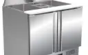 Materiaal: (behuizing en interieur) RVS, 2 deuren, telescopisch schuifdeksel, Polyethyleen snijplank, Levering zonder GN bak, Indelingsmogelijkheid boven: 2x 1/1 + 2x 1/4 GN bakken, tot 150 mm diep (andere combinaties mogelijk), 2 in hoogte verstelbare roosters en 2 sets steunrails, Digitale temperatuurregeling (Dixell), Verdamper aan 3 zijden geschuimd, Statische koeling met circulatieventilator en automatische ontdooiing.