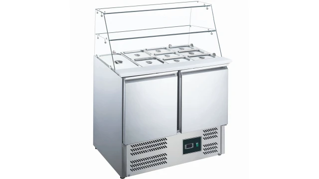Saro model ES 900 G saladette met glas top, statisch met ventilator koeling, buiten en binnen roestvrij staal