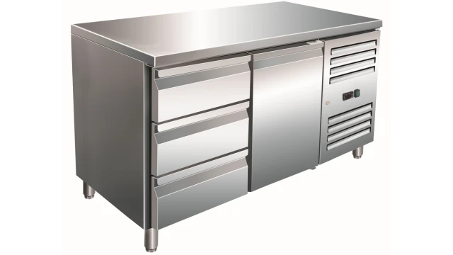 De koelwerkbanken van Saro zijn van de hoogste kwaliteit. Deze geforceerde koelwerkbank , is ideaal voor horeca met een kleine keuken. een eenvoudig te reinigen werkblad.