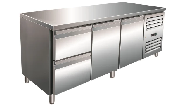 De koelwerkbanken van Saro zijn van de hoogste kwaliteit. Deze geforceerde koelwerkbank , is ideaal voor horeca met een kleine keuken. een eenvoudig te reinigen werkblad.