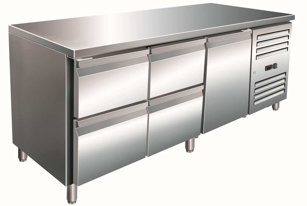 De koelwerkbanken van Saro zijn van de hoogste kwaliteit. Deze geforceerde koelwerkbank , is ideaal voor horeca met een kleine keuken. een eenvoudig te reinigen werkblad.