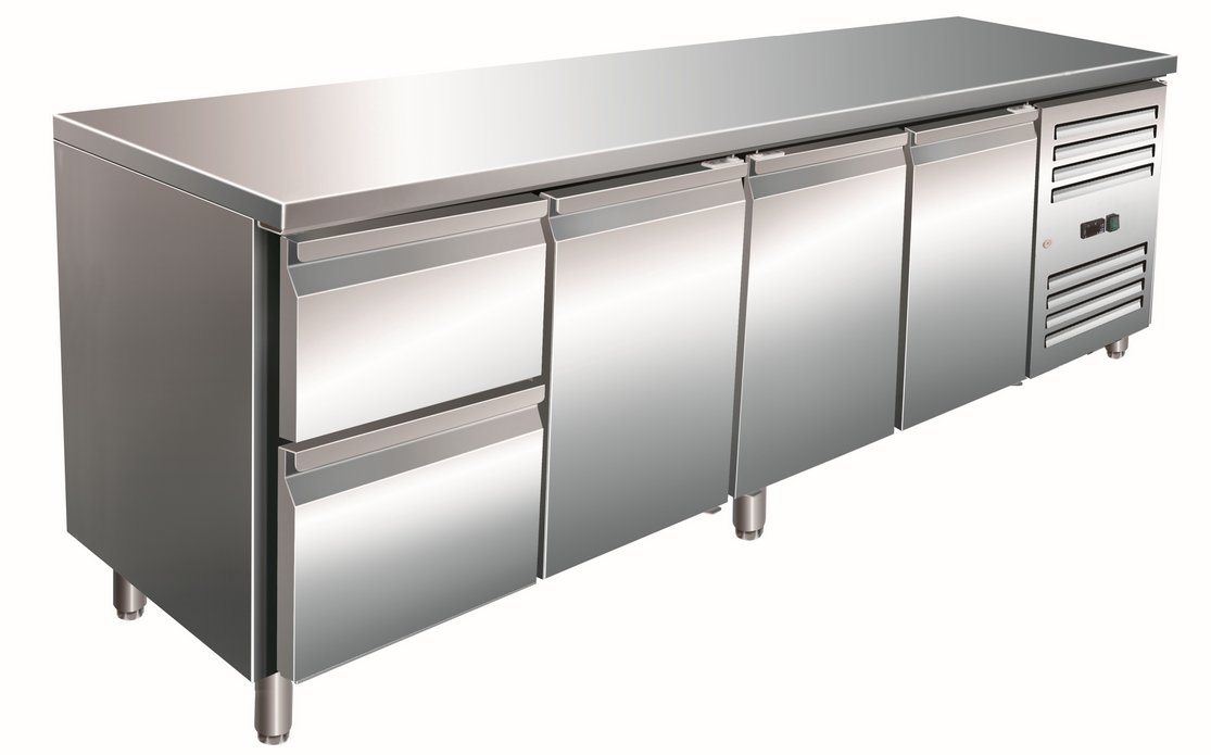De koelwerkbanken van Saro zijn van de hoogste kwaliteit. Deze geforceerde koelwerkbank , is ideaal voor horeca met een kleine keuken. een eenvoudig te reinigen werkblad.