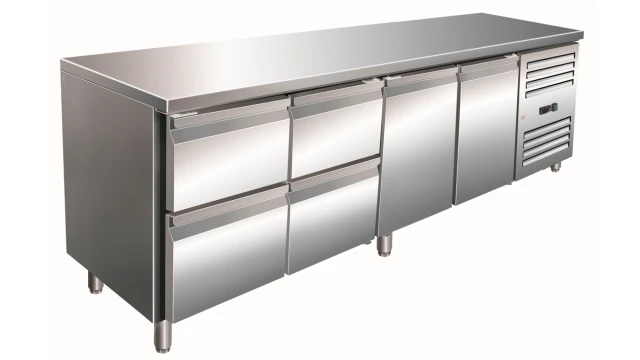 De koelwerkbanken van Saro zijn van de hoogste kwaliteit. Deze geforceerde koelwerkbank , is ideaal voor horeca met een kleine keuken. een eenvoudig te reinigen werkblad.